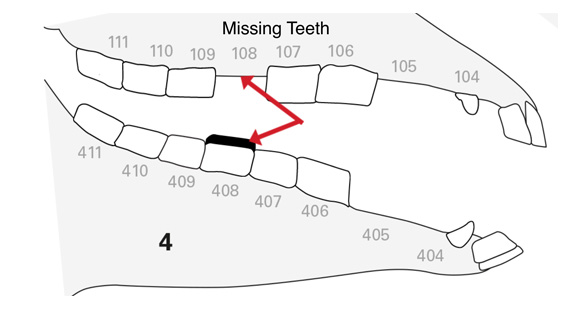 Teeth may be absent for a number of reasons whether it be as a result of extraction due to an irreparable issue or as a result of a developmental issue leaving the horse with less teeth than they should have in normal circumstances.